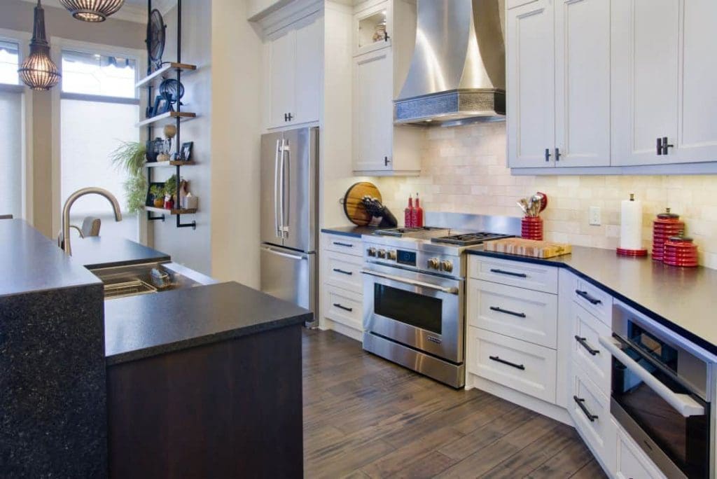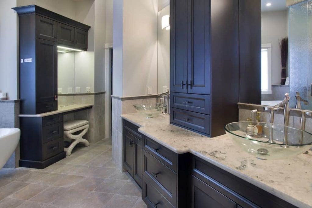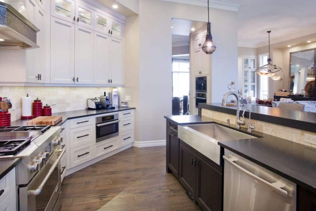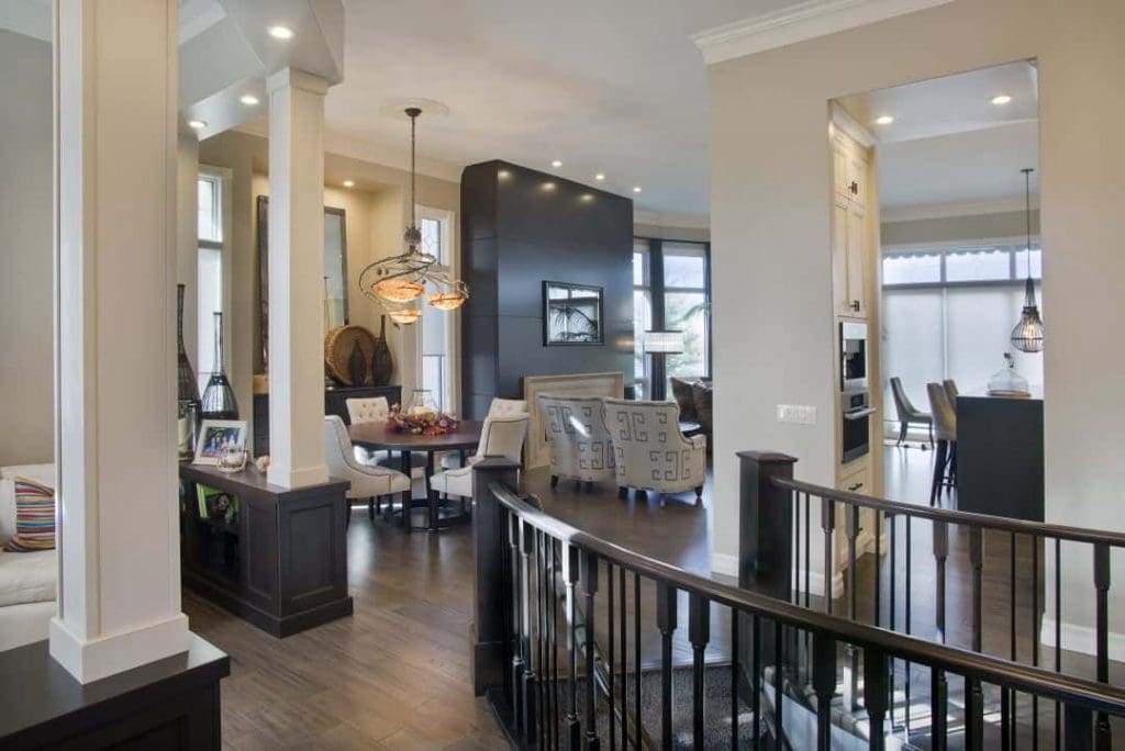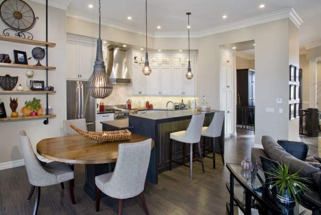 The existing main floor plan of this home was already quite functional for our clients, but required some room modifications and modernization of the interior finishes. These room modifications included a new kitchen layout with an integrated dining table in the island, and a complete redesign of the master ensuite, to allow for a larger shower.